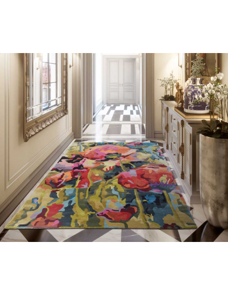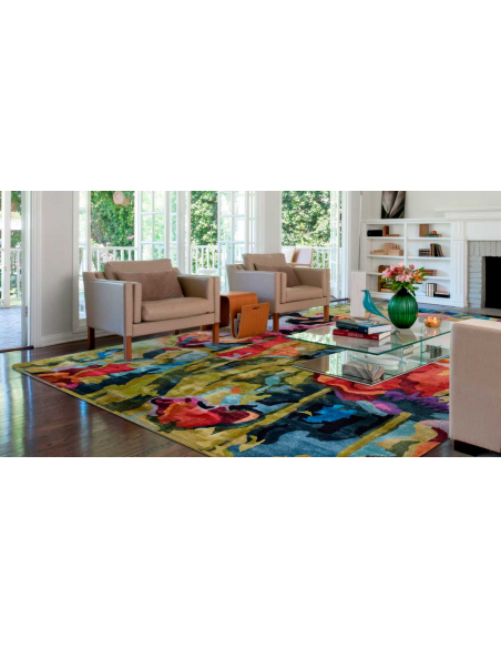Colorida alfombra de viscosa y lana. Este modelo creará una explosión visual de color en tu salón o recibidor. Posibilidad de elegir los colores que mejor vayan con la decoración de la estancia donde la coloques . Esta alfombra está indicada para aquellas estancias que necesitan un toque de color, como forma de crear contraste con muebles sencillos o para combinar con objetos decorativos en la misma gama de colores.
