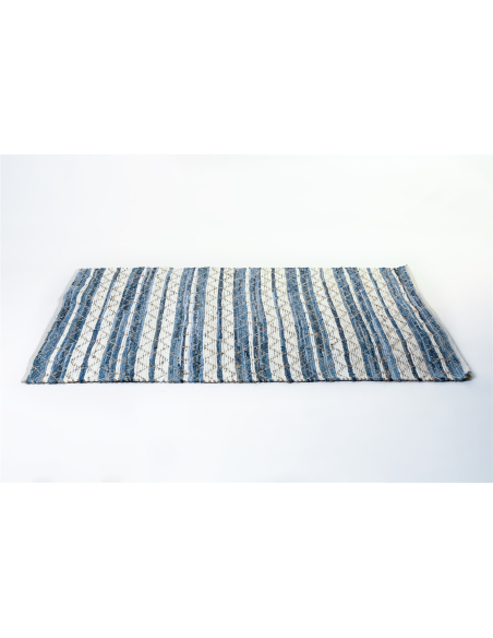 Alfombra cenefa pompón crochet azul perfecta para decorar y dar un toque de color a cualquier estancia de tu hogar.