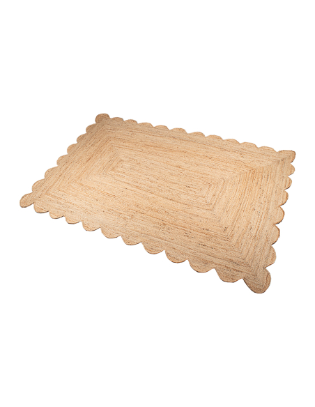 Alfombra yute 230 cm borde dentado, su diseño presenta un borde con semicírculos que forman una disposición ondulada alrededor de todo el contorno, proporcionando un detalle decorativo distintivo. Con un diseño sobrio y fácilmente combinable, esta alfombra es perfecta para cualquier espacio, desde salones hasta dormitorios, añadiendo calidez y estilo de manera sutil y sofisticada. Disponible en diferentes tamaños para adaptarse a tus necesidades de decoración.