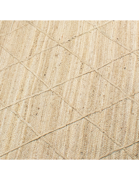 Alfombra yute 300 cm natural rombos, el diseño esta tejido a lo largo de toda su superficie añaden un encanto único y natural, complementando su diseño sobrio y fácilmente combinable. Con bordes lisos que destacan su elegancia, esta alfombra es ideal para cualquier espacio, desde salones hasta dormitorios, proporcionando un toque de calidez y estilo artesanal. Disponible en varias medidas para adaptarse perfectamente a tus necesidades de decoración.