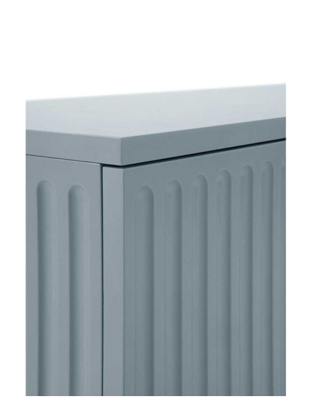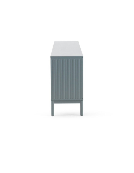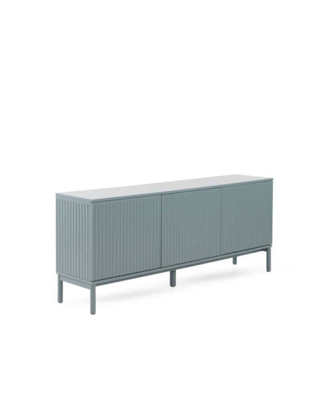 Aparador Ópalo ranuras azul, combina estilo moderno y funcionalidad, ideal para aportar un toque de color y elegancia a tu hogar. Su frente de 3 puertas con ranuras acanaladas y laterales decorativos aporta dinamismo y personalidad al espacio. Gracias al sistema push to open, abrir sus puertas es cómodo y sin tiradores, mientras que las bisagras con cierre amortiguado suave garantizan seguridad y silencio. En su interior, el estante movible con tres posiciones de altura permite organizar vajilla, libros u objetos decorativos según tus necesidades. Las patas de madera maciza de 20 cm completan la pieza aportando estabilidad y armonía, haciendo de este aparador un mueble práctico y sofisticado.