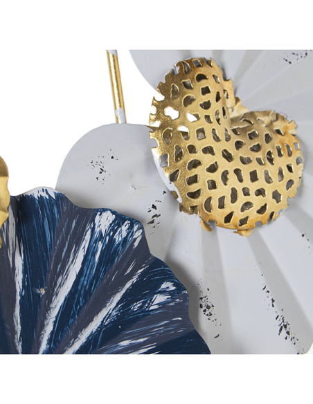 Aplique pared metal cuadrado flores blanco y dorado y azul
