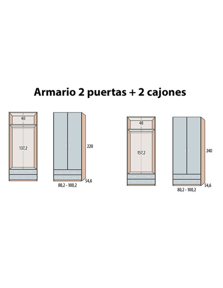 Medidas: Ancho: ↔ 80,2 / ↔ 100,2 Fondo: ↗ 54,6 Alto: ↕ 220 cm / ↕ 240 cm