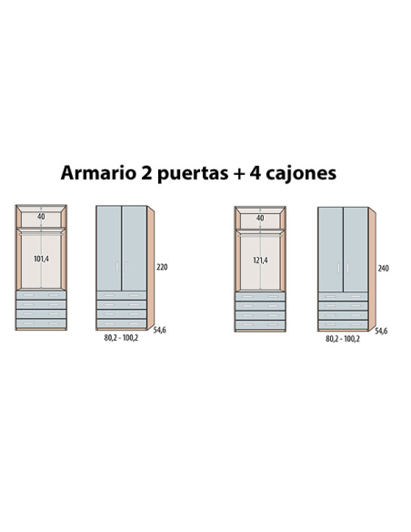 Medidas: Ancho: ↔ 80,2 / ↔ 100,2 Fondo: ↗ 54,6 Alto: ↕ 220 cm / ↕ 240 cm