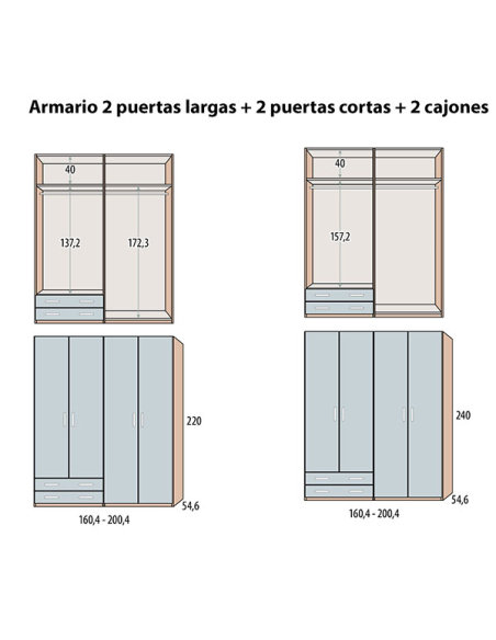Medidas: Ancho: ↔ 160,4 cm / 200,4 cm Fondo: ↗ 54,6 Alto: ↕ 220 cm / ↕ 240 cm