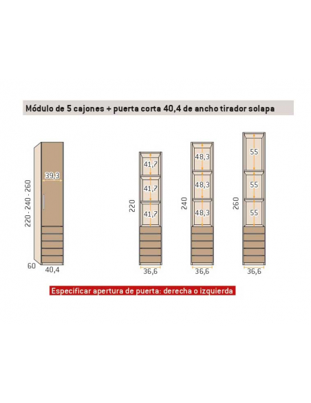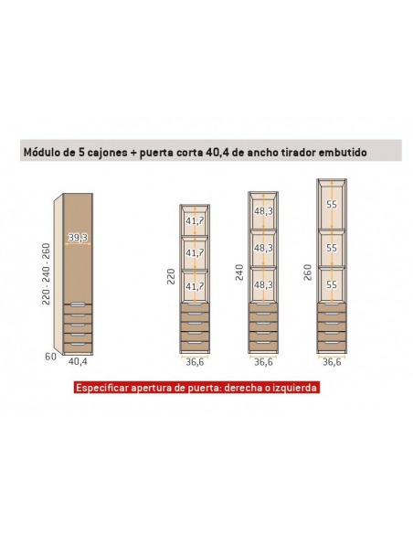 Armario recto 1 puerta 5 cajones 40,4 cm
