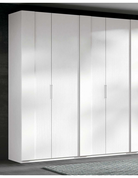 ¿Necesitas organizar tu ropa, calzado y accesorios? No te pierdas nuestra sección de armarios donde encontrarás este armario de cuatro puertas batientes. El interior está dividido en dos módulos con una barra para colgar la ropa en cada uno de ellos y estantes; uno en el caso de los armarios con 220 cm de alto y dos estantes en las medidas de 240 y 260 cm. Un imprescindible en las habitaciones tanto a nivel organizativo como compositivo.
