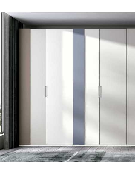 Armario recto cuatro puertas batientes, disponible en cinco anchuras diferentes a partir de 159,20 cm, y tres alturas desde 220 cm, combinables entre sí. Echa un vistazo a los acabados para las puertas y combínalo con el tirador que más te guste.