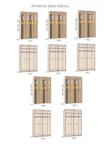 Medidas disponibles de ancho: 159,20 cm / 169,20 cm / 179,20 cm / 189,20 cm / 199,20 cm