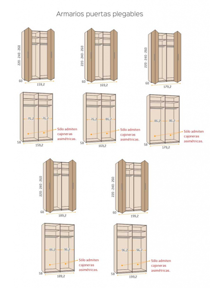 Medidas disponibles de ancho:  159,20 cm / 169,20 cm / 179,20 cm / 189,20 cm / 199,20 cm