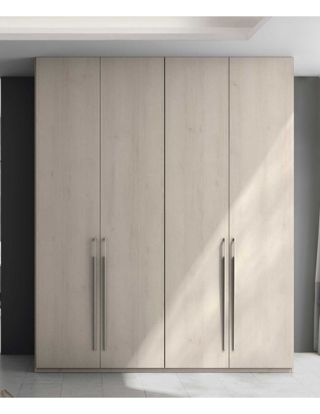 Armario recto cuatro puertas plegables, disponible en cinco anchuras diferentes a partir de 159,20 cm, y tres alturas desde 220 cm, combinables entre sí. Echa un vistazo a los acabados para las puertas y combínalo con el tirador que más te guste.
