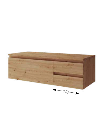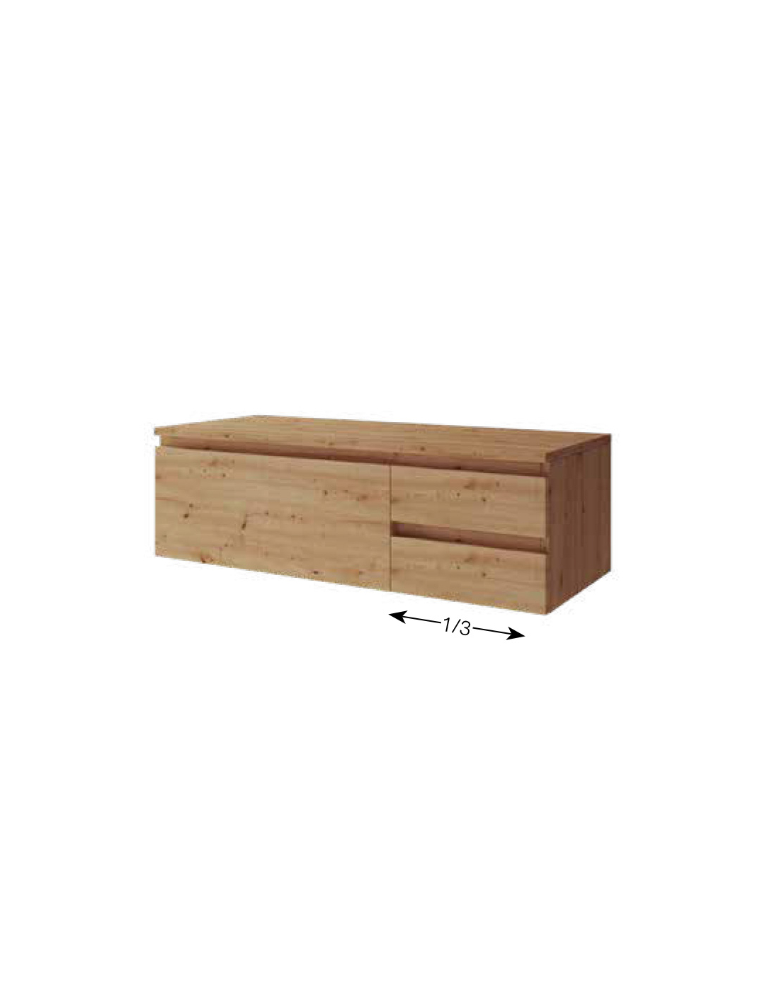 -El tamaño de los dos cajones pequeños de largo es de 1/3 de la medida total de largo del mueble.