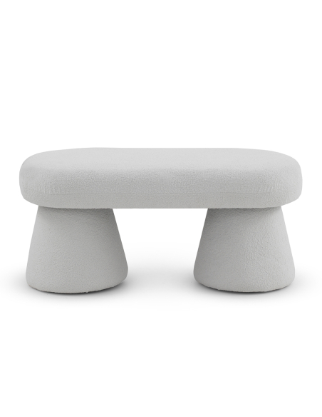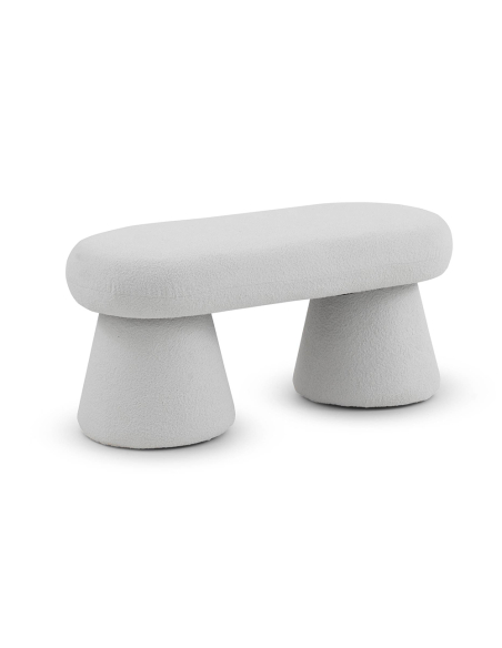 Banqueta descalzador Boucle gris, su diseño único, inspirado en formas orgánicas redondeadas, la convierte en un punto focal instantáneo. Está completamente tapizada en un suave tejido bouclé de color gris claro, incluyendo sus dos robustas patas cónicas que le confieren una apariencia monolítica y contemporánea. Esta banqueta no es solo un asiento funcional, sino una declaración de estilo. Perfecta para el recibidor, el salón como banco bajo, o incluso a los pies de la cama, aporta una textura acogedora y un diseño vanguardista. Su forma suave y redondeada invita a sentarse o a usarla como superficie de apoyo ocasional. Lista para colocar y admirar, ya que no requiere montaje, la banqueta es ideal para interiores modernos, minimalistas o Wabi-Sabi que buscan piezas con carácter y personalidad. Añade confort, textura y un diseño orgánico y singular a tu decoración con esta original banqueta.