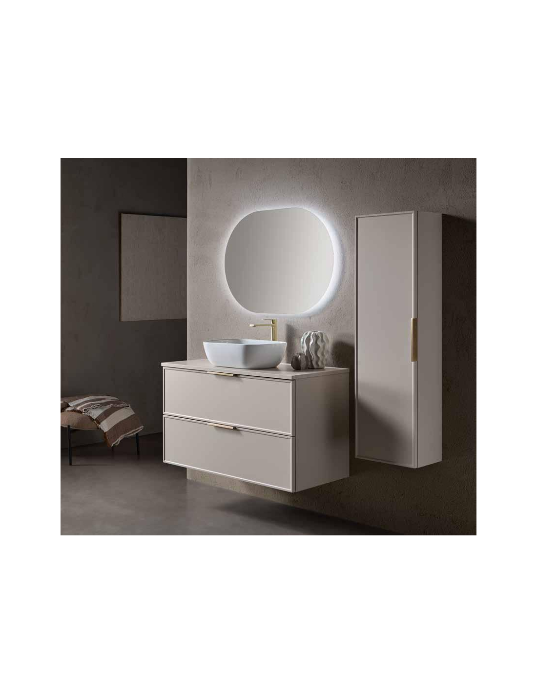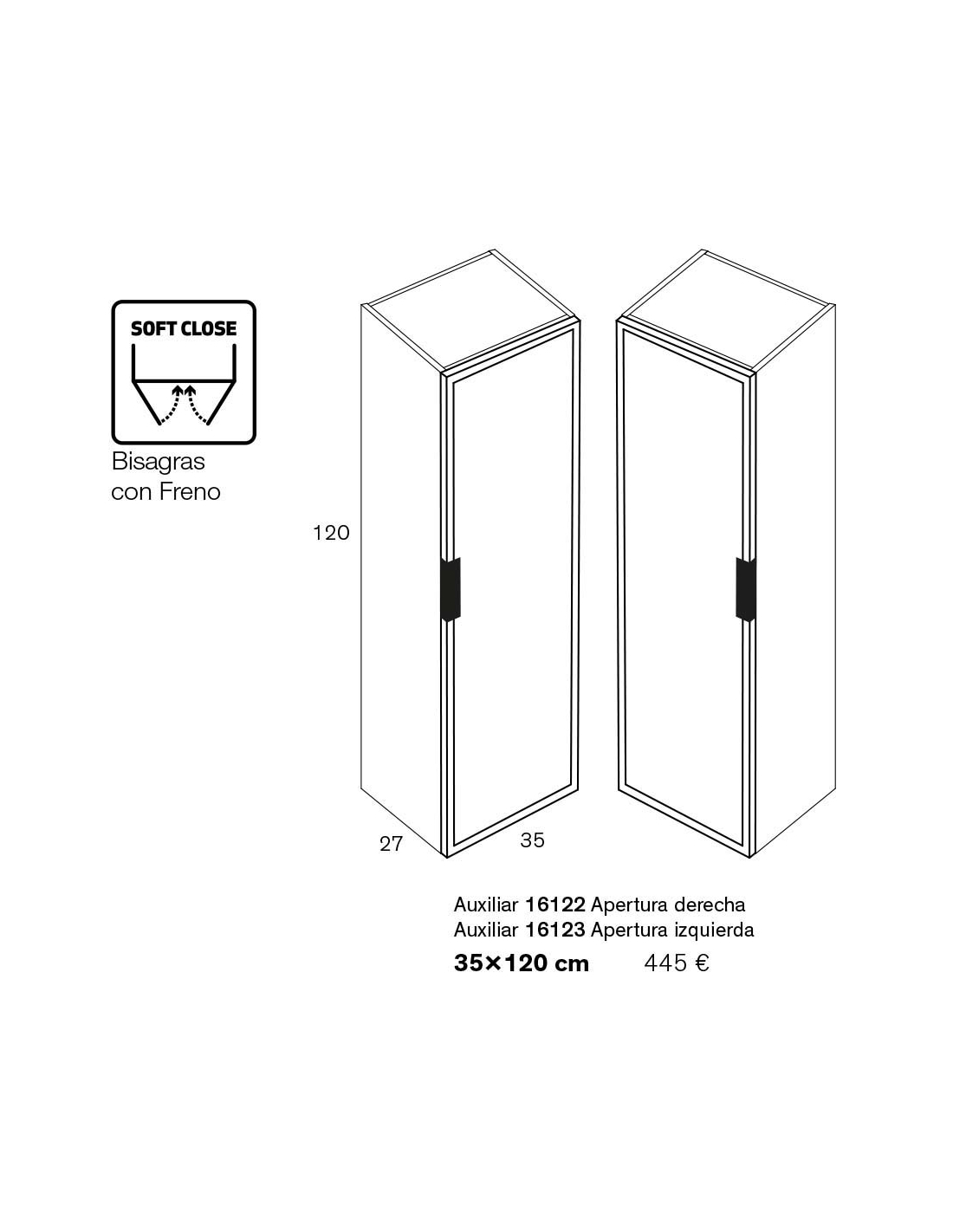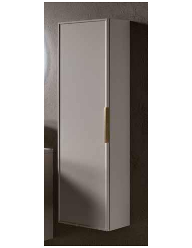 Columna auxiliar de baño Kubik colgante perfecta para almacenar todos los accesorios del baño y tenerlos a mano. Tiene una cómoda puerta con opción de poder elegir la apertura a derecha e izquierda. En la parte interior tiene un estante de madera fijo y tres de madera regulables.