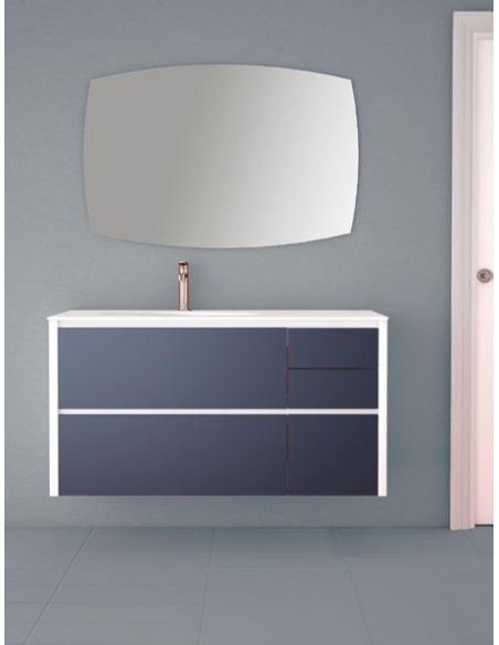 Composición de baño Kosta2 100 cm compuesto por un módulo de tres cajones, lavabo desplazado y espejo.