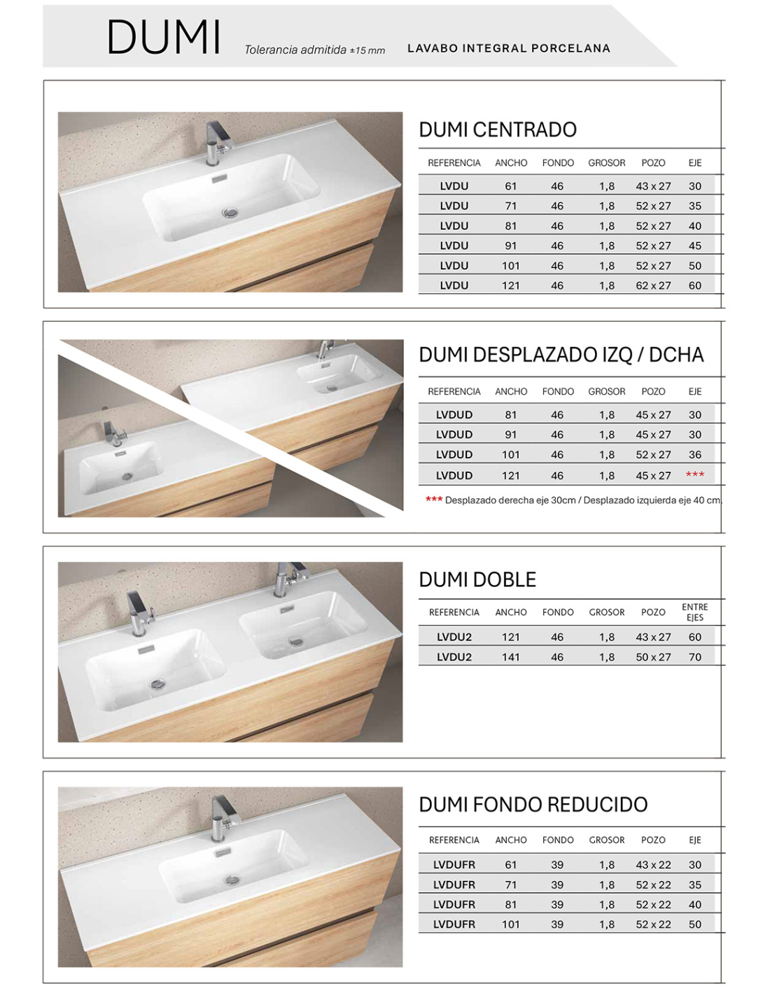 Medidas encimera lavabo desplazado Dumi: ↔ 101 cm ↗ 46 cm ↕ 1,8 cm