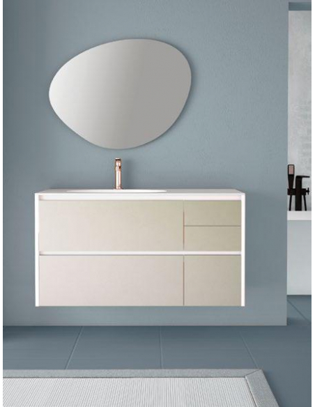 Composición de baño Kosta3 100 cm compuesto por un módulo de cinco cajones, lavabo desplazado y espejo.