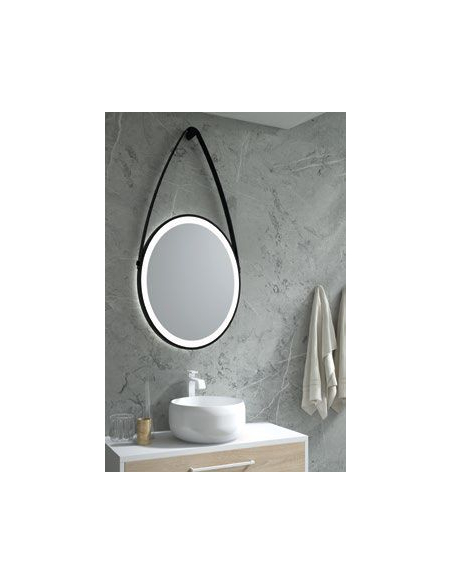 Espejo Gian metal + LED con marco color negro y luz LED. Perfecto para combinar con cualquier mueble de baño.