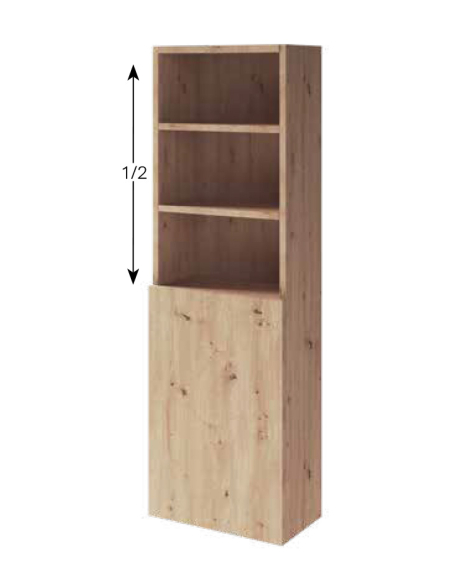 La zona de estantes vistos corresponde a 1/2 de la medida total de alto del mueble.