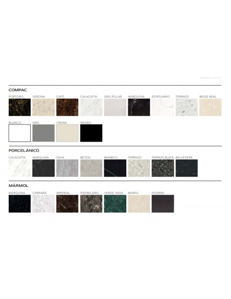 Medidas acabados Mármol: ↔ 61-221 cm ↗ 46 / 62 cm ↕ 2 ó 4 - 12 cm