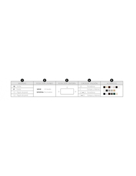 Medidas acabados Porcelánico: ↔ 61-221 cm ↗ 46 / 62 cm ↕ 1.5 ó 4 - 12 cm
