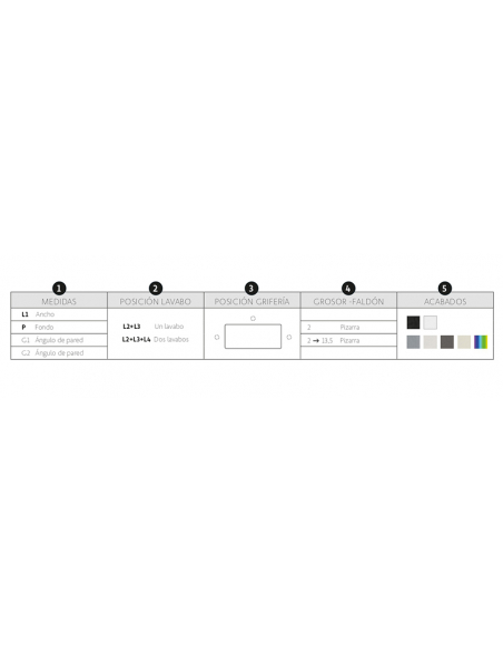 Encimera de lavabo PIZARRA disponible en diferentes medidas y acabados. Diseño y estilo sencillo que combina a la perfección en cualquier baño con cualquier estilo.