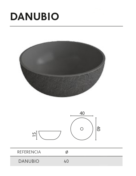 Lavabo de posar DANUBIO disponible en diferentes acabados mate. Acabado exterior en pizarra con textura rugosa e interior liso. Diseño y estilo sencillo que combina a la perfección en cualquier baño con cualquier estilo.