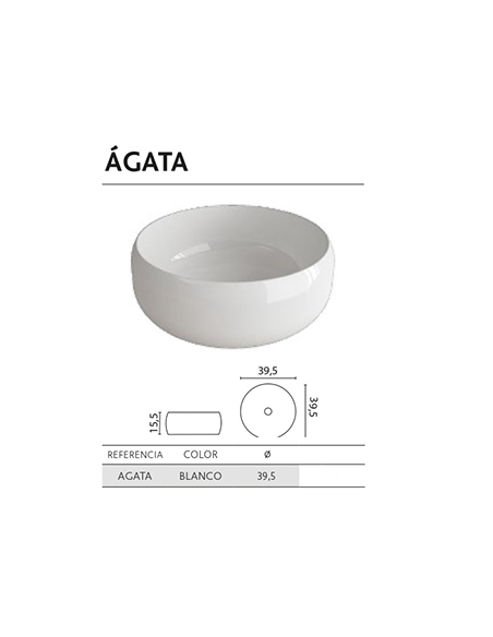 Lavabo de posar ÁGATA en porcelana en blanco. Diseño y estilo sencillo que combina a la perfección en cualquier baño con cualquier estilo.