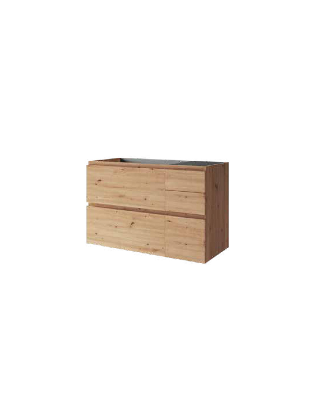 Mueble de baño con cinco cajones para lavabo desplazado de 64 cm de alto. Disponible en varias medidas y acabados para que encuentres el perfecto para tu hogar.