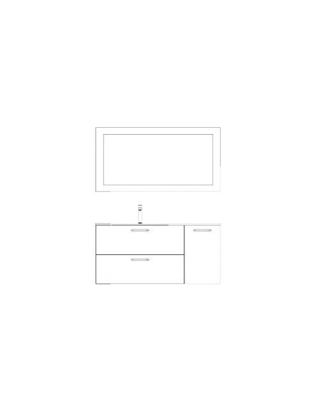 Composición de baño compuesto por mueble de dos cajones y un armario, espejo y módulo de tres armarios y hueco decorativo.