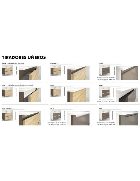 - Si adquieres un portalavabos a juego, el costado del portalavabos que se queda oculto puede pasarse al armario bajo sin incremento.