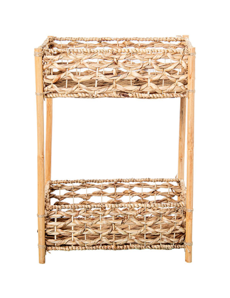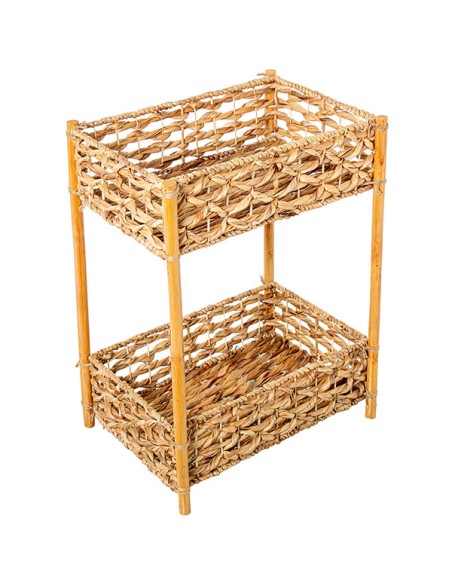 Estante almacenaje 2 cestos jacinto de agua con patas madera