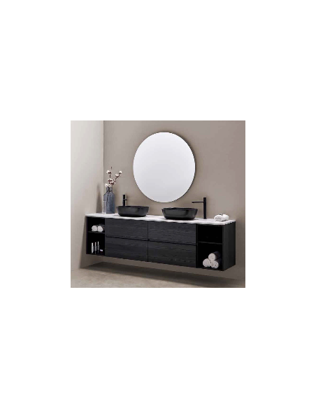 Sifón redondo y válvula click-clack en cromado brillo o negro mate para muebles de baño.Plazo de entrega: 10 - 20 días hábiles