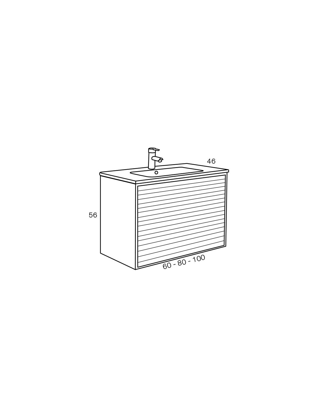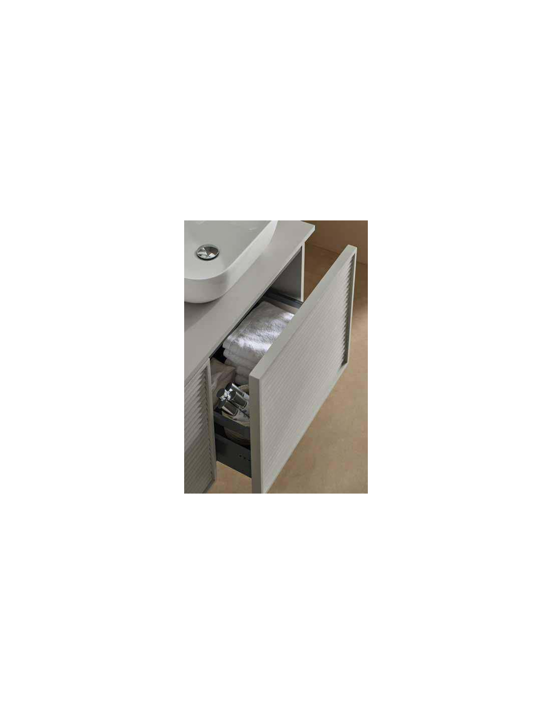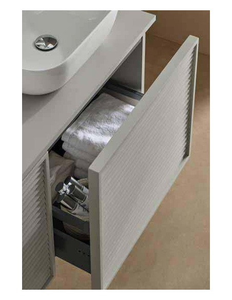 Conjunto de mueble de baño Zenit personalizable compuesto por un módulo de un cajón alto con encimera cerámica con lavabo. Espejo opcional.