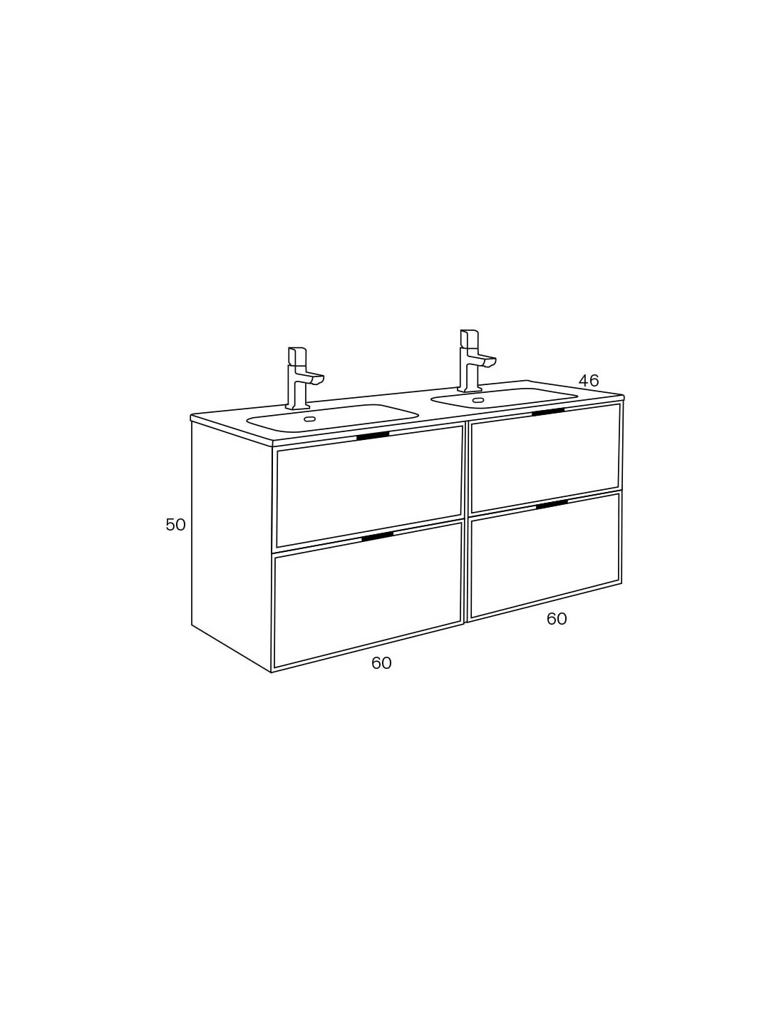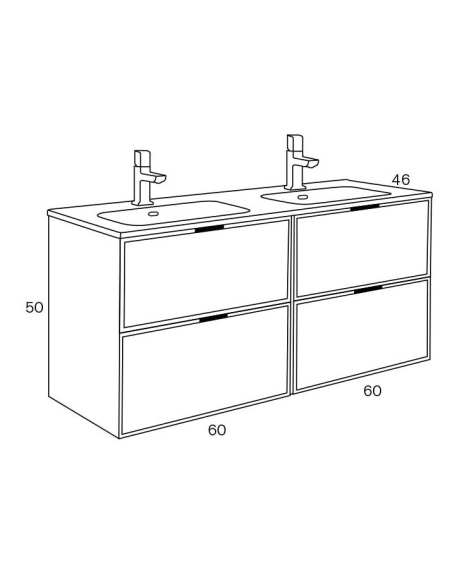 Mueble de baño Kubik de 120 cm con dos módulos de 2 cajones con tapa encimera cerámica con lavabo. Espejo opcional. Tapa PL 19 mm y MDF 19 mm. Cajones metálicos con freno y extracción total, separador incluido.
