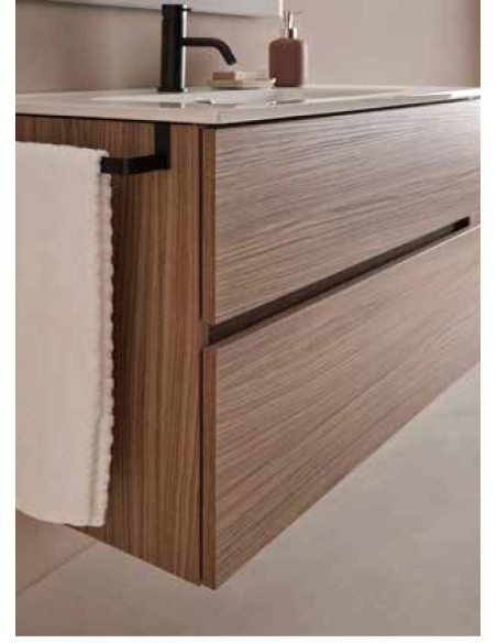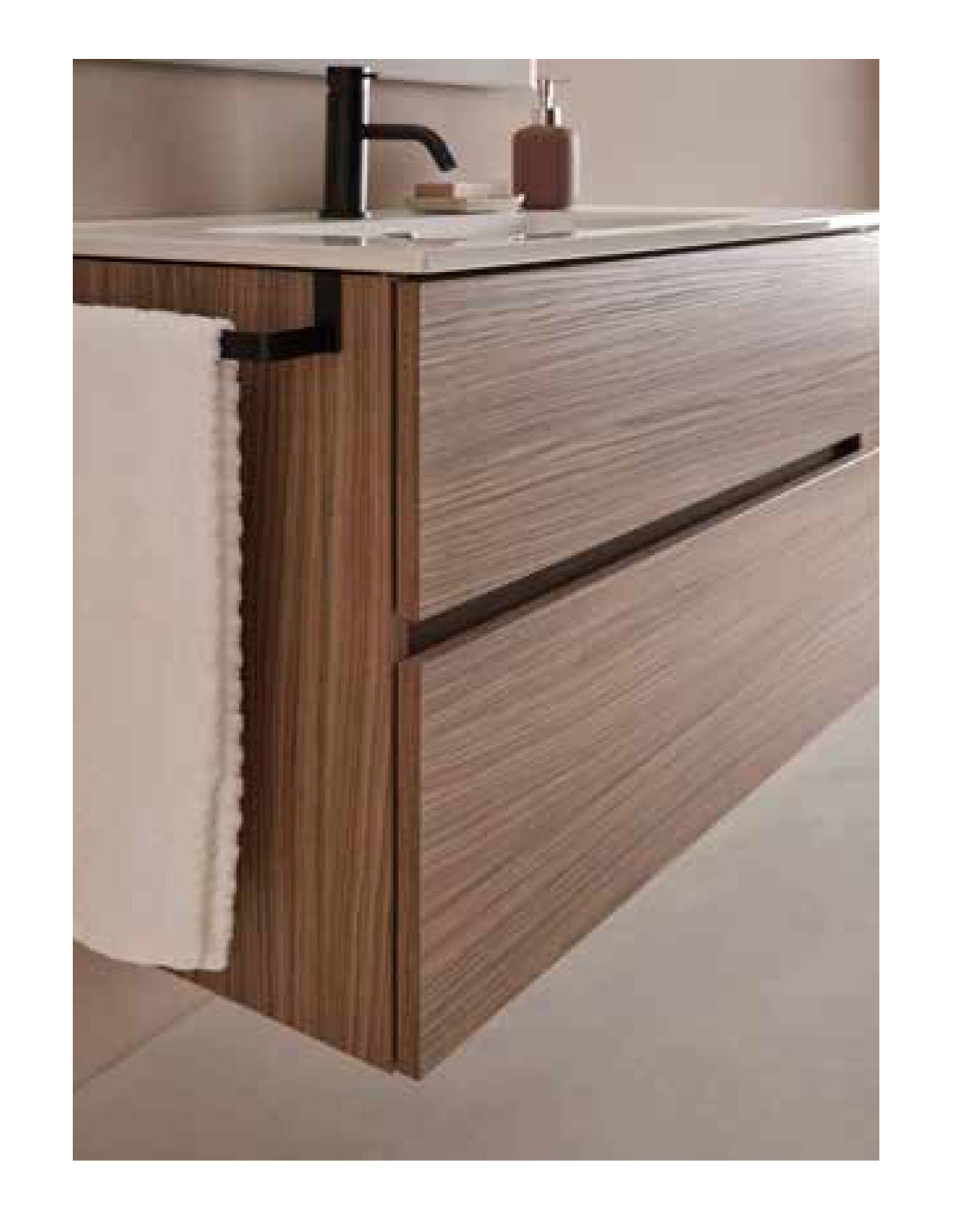 Accesorios adicionales opcionales para el módulo: Sifón y válvula en cromo brillo o negro mate / Patas de 20 o 31,5 cm de altura en anodizado brillo o negro mate / Toallero lateral en cromo brillo o negro mate (36 x 6,5 x 6,3 cm) / Aplique en cromo brillo o negro mate*