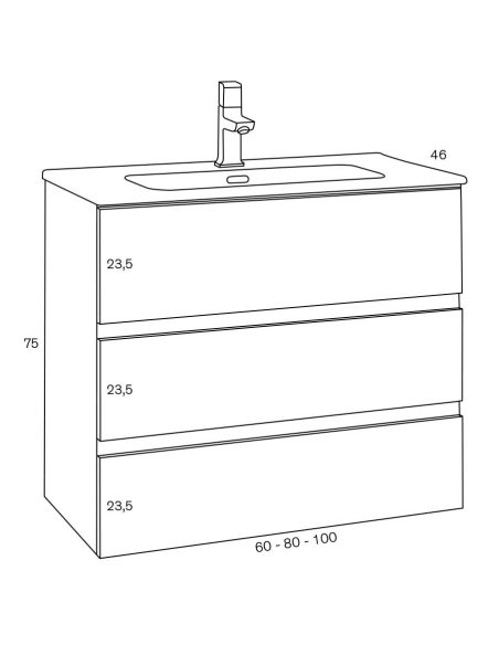 Para mueble de 80 cm:  ↔ 60 cm ↕ 80 cm