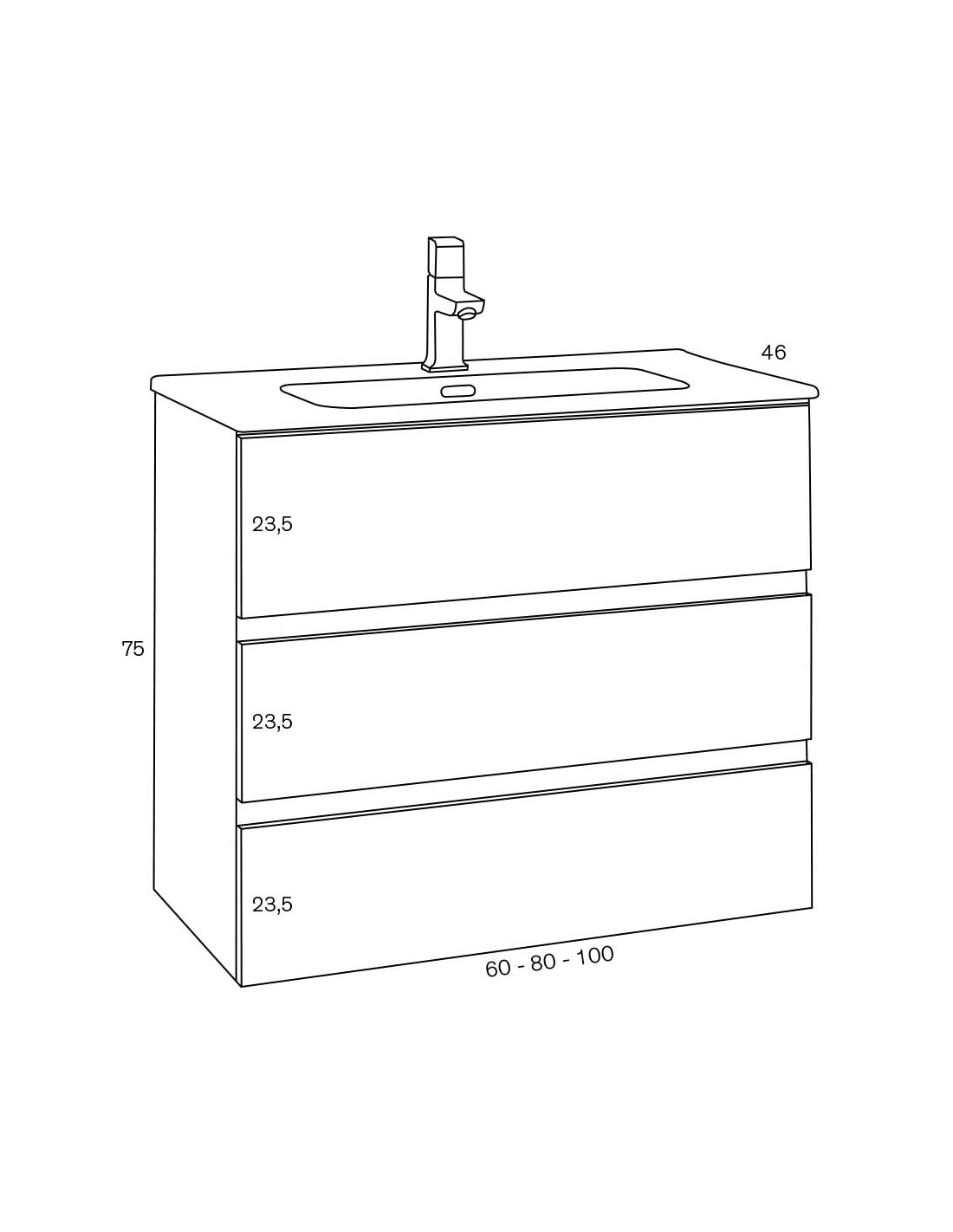 Mueble de baño Deco Lux 3 cajones con encimera cerámica con lavabo. Espejo opcional. Desde 60 cm de ancho.