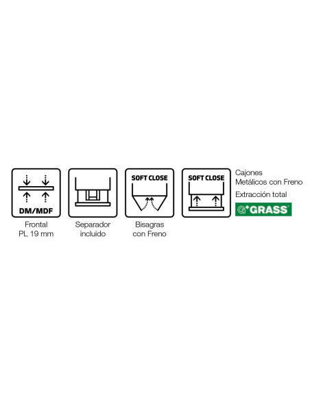 Estos módulos de baño están fabricados con el frontal PL de 19 mm, separador de cajón incluido, cajones metálicos con freno y extracción total.