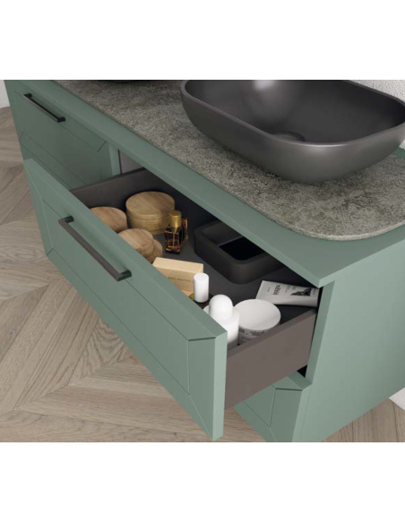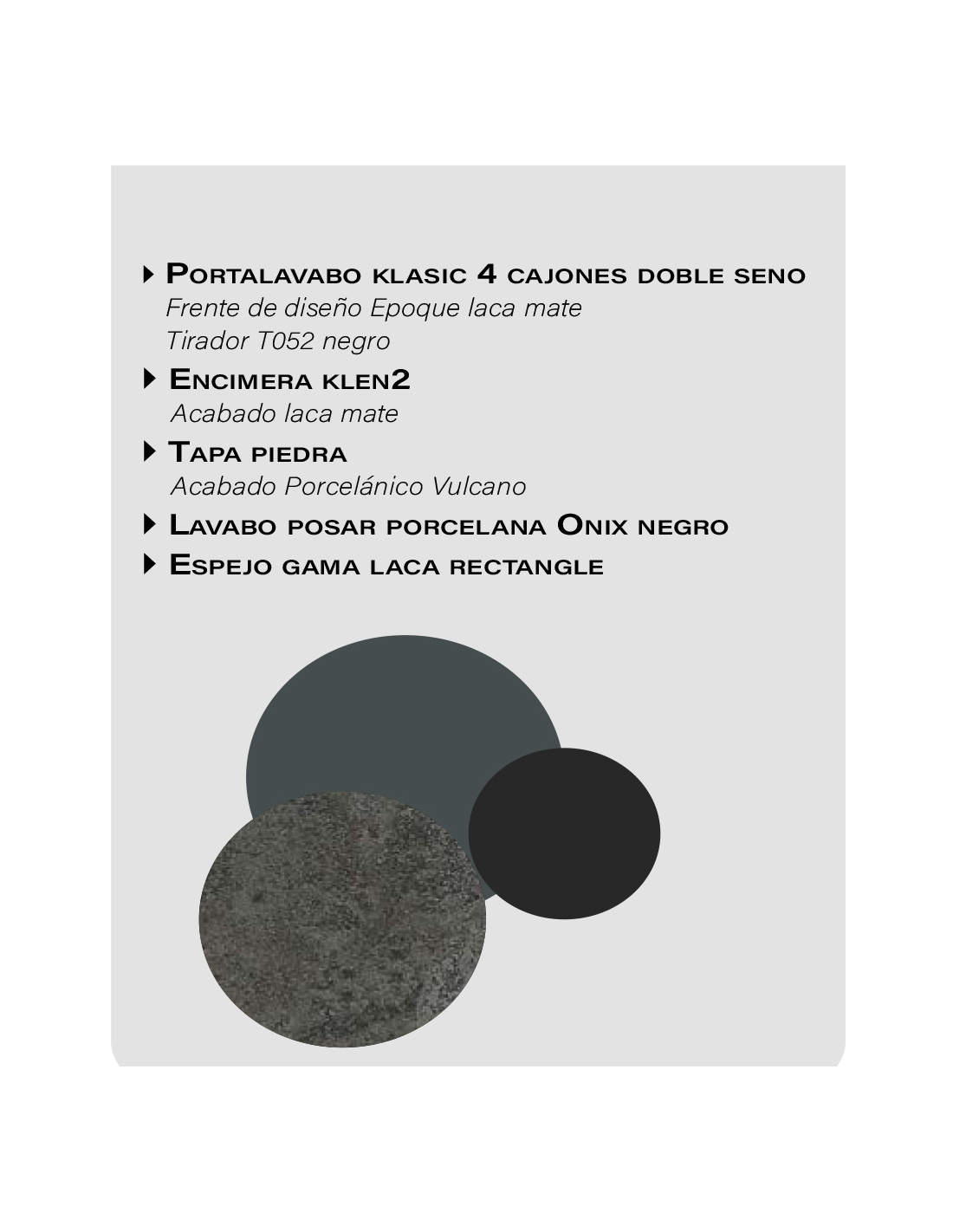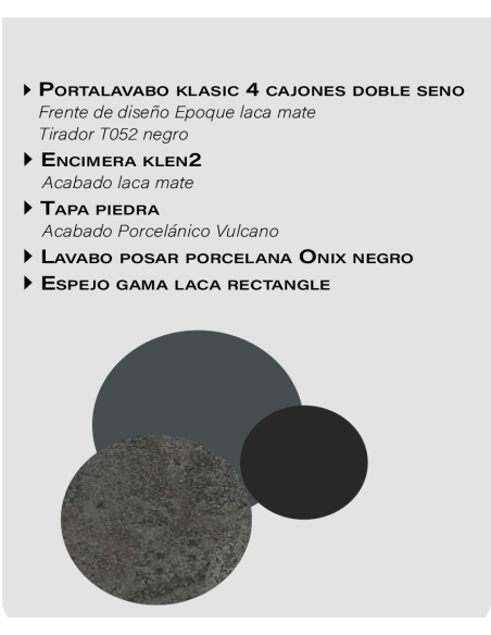Frente Epoque laca mate. Tirador T052 negro. Tapa piedra porcelánico Vulcano