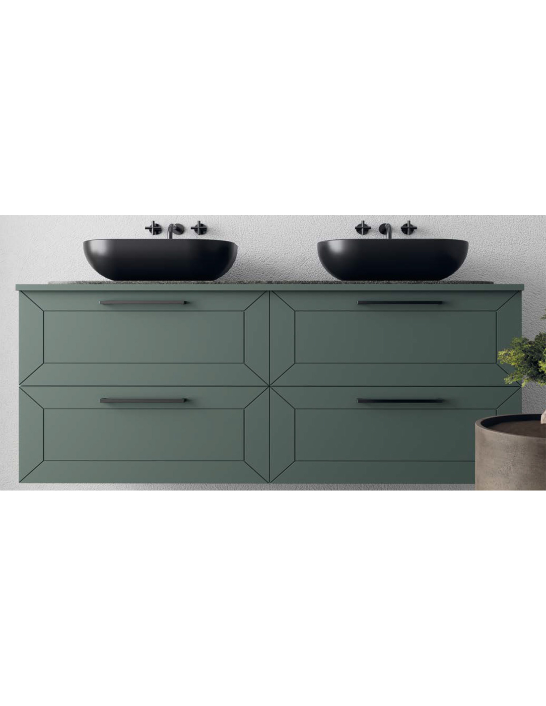 Composición de baño Epoque Laca 160 cm, dos muebles porta lavabos de 80 cm con el frente diseño Epoque, encimera de madera con lavabos de posar y dos espejos Rectangle. Una composición elegante y moderna con la que amueblar el baño.