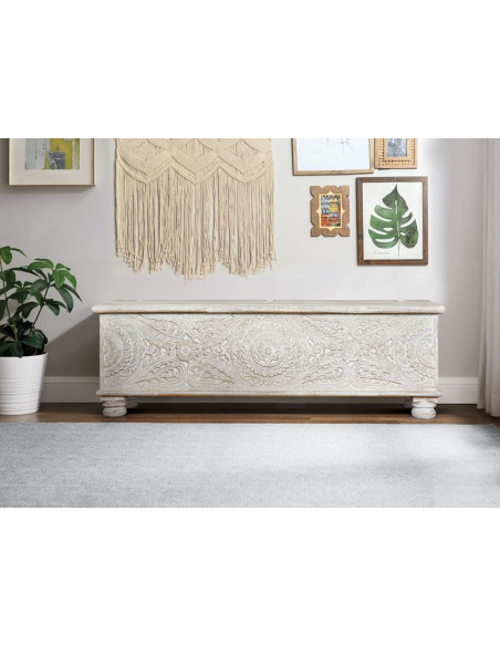Precioso baúl fabricado en madera de mango que podrás colocar en cualquier estancia de tu hogar. Con un diseño sencillo y sutil dará una armonía y creará ambientes cálidos a su alrededor. Con el material del que está fabricado consigue ser un mueble único ya que da tonalidades diferentes en cada uno de ellos. Este baúl es perfecto para poner en una entrada, en el salón o a los pies de la cama. Un producto resistente y en sintonía con el medio ambiente. Sin duda, es una pieza de gran belleza y en la que además podrás guardar las cosas que necesites tener a mano pero guardadas como mantas en verano, cojines o zapatos.