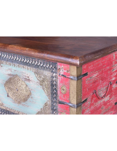Si necesitas espacio para guardar objetos que no utilices en tu hogar o dormitorio, te tenemos la solución perfecta con el Baúl en madera mango acabado rosa persa 6564, un mueble auxiliar para guardar todo lo que necesites con mucho estilo. Seguro no encontrarás una pieza como esta, por su diseño en colores y decorativos. Lucirá muy bonito donde lo coloques, además esta de moda.