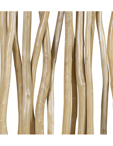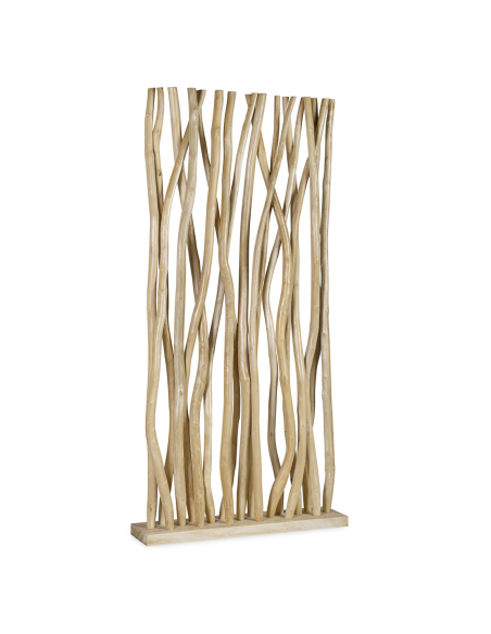 Biombo separador fabricado con madera blanqueada, una pieza perfecta para separar visualmente los espacios. Ideal para salones amplios donde queremos separar la zona de comedor de la zona de ocio. Esta pieza es perfecta para separar todo tipo de ambientes de manera decorativa. Su estructura crea maravillosas formas naturales, hechas gracias a secciones de madera todos de diferentes formas y tamaños, aportando un estilo totalmente único e irrepetible, no hay dos iguales.