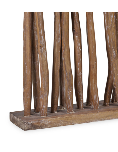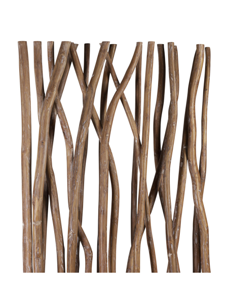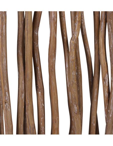 Biombo separador fabricado con madera blanqueada, una pieza perfecta para separar visualmente los espacios. Ideal para salones amplios donde queremos separar la zona de comedor de la zona de ocio. Esta pieza es perfecta para separar todo tipo de ambientes de manera decorativa. Su estructura crea maravillosas formas naturales, hechas gracias a secciones de madera todos de diferentes formas y tamaños, aportando un estilo totalmente único e irrepetible, no hay dos iguales.