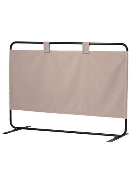 Separador terraza bar de metal separadora de espacios. Estructura en gris oscuro y tejido en Acrílico Masa Sort oscuro. De 150 x 150 cm.