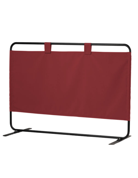 Separador terraza para hostelería. Pintada la estructura en gris oscuro, un esmalte antióxido muy resistente al entorno. Cortina en tejido Acrílico Masa Soft que facilita la intimidad de los comensales.