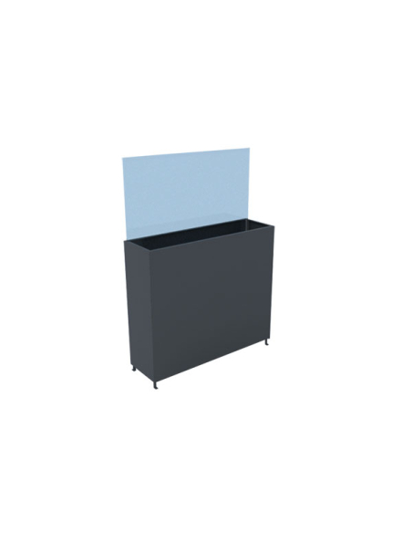 Jardinera de hierro para hostelería, normalmente utilizada para la separación de espacios o como elemento decorativo. Pintada con "Oxiron" en gris oscuro, un esmalte antióxido muy resistente al entorno. Esta jardinera está equipada con un práctico desagüe que facilita la evacuación de agua en caso de lluvia para uso exterior. Adquiérela con o sin cristal laminado de 4 + 4 mm. Si optas por jardineras con cristal, puedes elegir entre los cantos rectos o los cantos biselados. Instala de forma elegante y sencilla plantas naturales o artificiales, para crear espacios únicos.