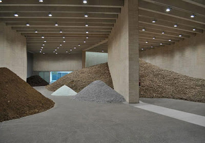 Con esta representación ella quiere romper con esa visión idealizada de la arquitectura y el urbanismo y dejar los materiales vistos como son en su forma más natural, previa a la construcción o posterior a la demolición de los edificios, para ello calcula el peso que cada material tiene en un edificio y con ese mismo peso y material hace montañas o montones, hormigón, acero, arena, vidrio, madera, toda materia prima presente en la construcción es susceptible de aparecer en una de sus obras.