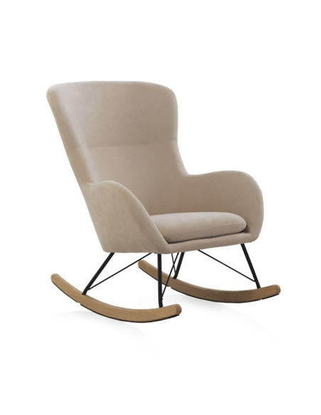 Balancín Aliso tapizado beige, su silueta elegante, con líneas curvas y envolventes, está tapizada en una agradable tela color beige, aportando calidez y suavidad. La base combina la modernidad de las patas metálicas negras con la calidez tradicional de los balancines de madera de haya natural. Este balancín invita al descanso gracias a su forma ergonómica y a su suave movimiento oscilante. El asiento acolchado proporciona un confort duradero, convirtiéndolo en el lugar perfecto para leer, descansar o disfrutar de un momento de calma. Su diseño, más compacto que la versión con reposacabezas, se adapta fácilmente a diferentes espacios. Perfecto para salones, dormitorios o zonas de estar que busquen un toque de diseño nórdico y un asiento extra confortable. El balancín Aiko es una pieza funcional y decorativa que añade carácter y una invitación al relax a tu hogar.